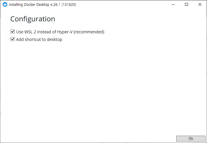 1. 먼저 기존 노드js보드를 작업한 PC(노드js16.14.0)에 윈도우용 도커 데스크탑을 설치한다. 설치 과정의 핵심은 아래와 같다.